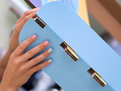 Рязане и огъване на плексиглас, офсетен печат върху хартия, щанцоване и сглобяване.