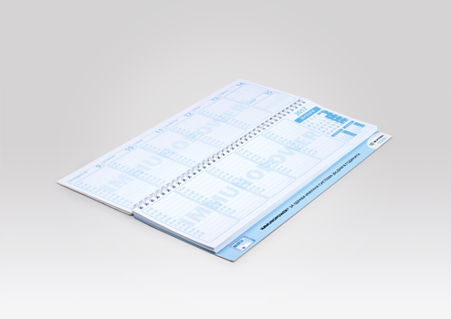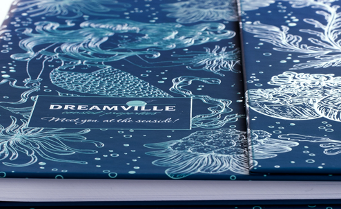 Пълноцветен офсетен печат, каширане на твърда корица за тефтера, сглобяване със спирала, щанциране