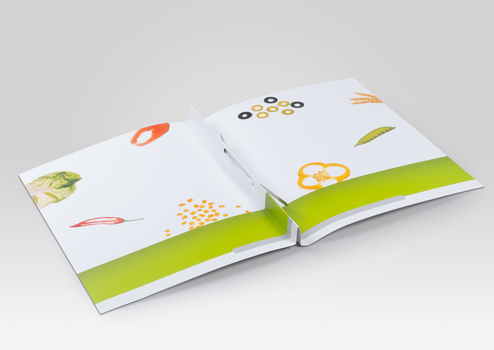 Дизайн, офсетен печат, ламинат, каширане и сглобяване на вече готовият каталог.